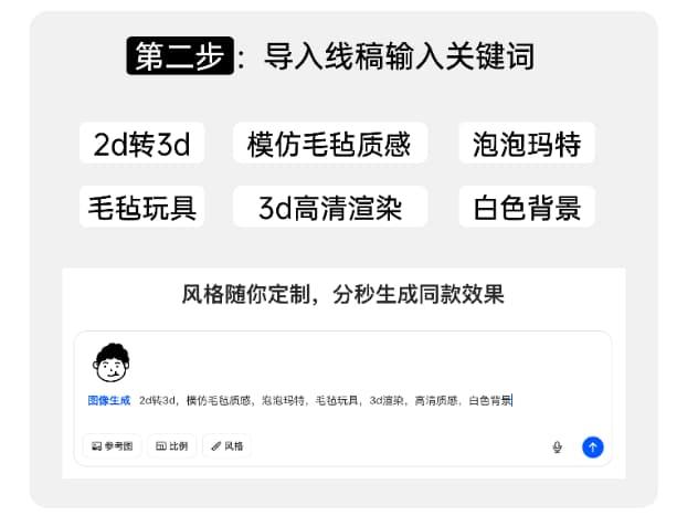 不会画画也没关系,简单三步做一个卡通形象,使用AI绘画工具将2D转为毛毡质感3D形象!