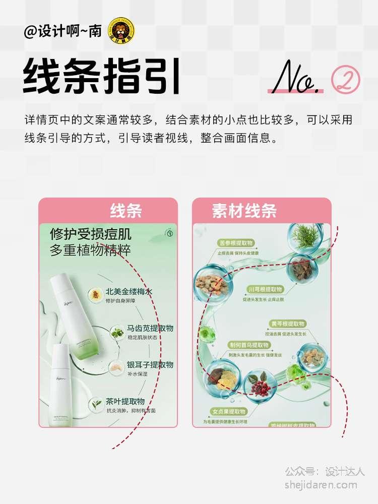 2、 线条指引:轻轻一画🎨,轻松拿捏视觉动线,用户目光乖乖跟着线条走~
