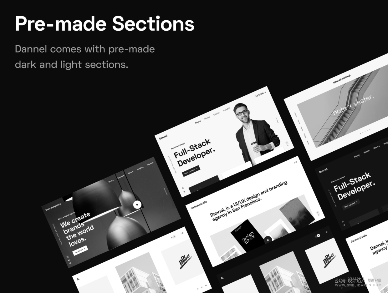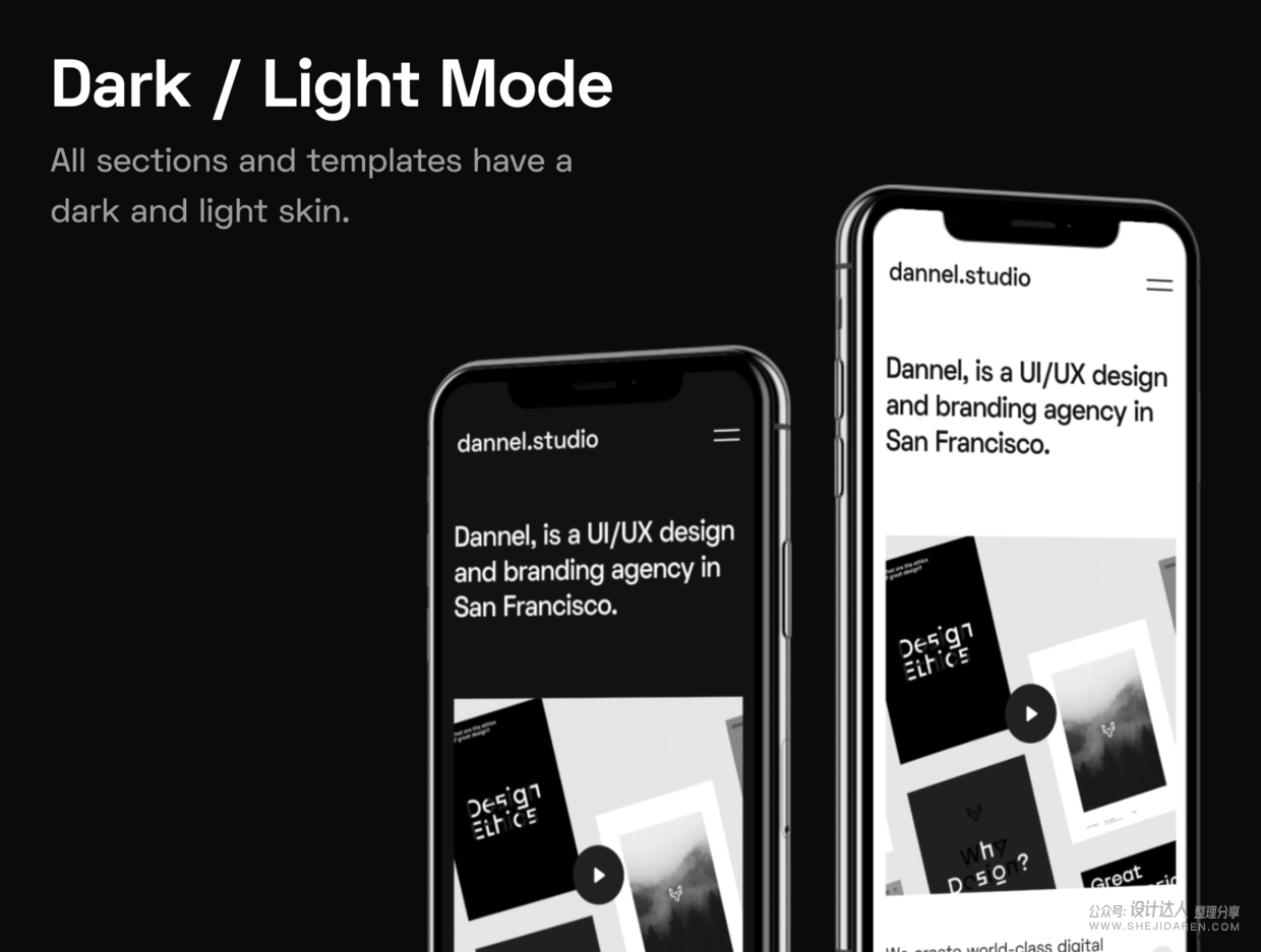 一个精心制作的,富有创造性和现代设计的数字和工作室网站模板。这个模板是数字机构、工作室、自由职业者、创业公司和大公司的理想选择。是Figma模板!包括15个模板、暗/亮两种模式。