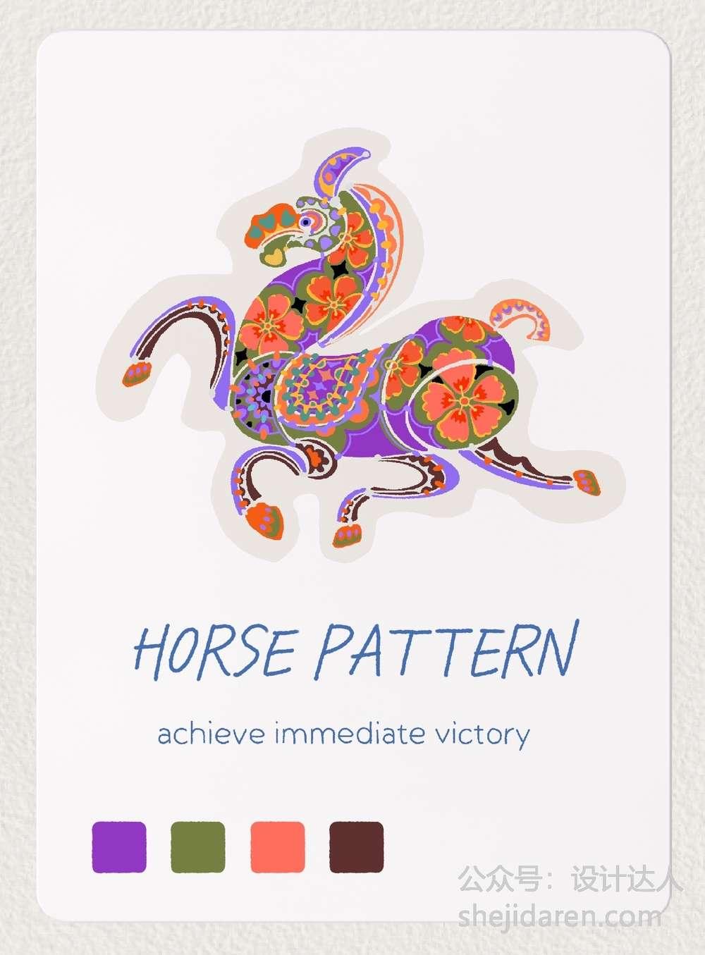 9张以马为主题的多巴胺配色插画欣赏: