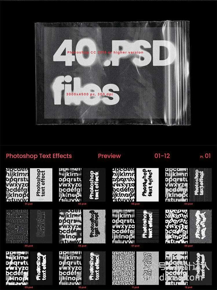 素材名称:【985】酸性噪点磨损故障风!海报文字字体效果样机 PSD 素材包