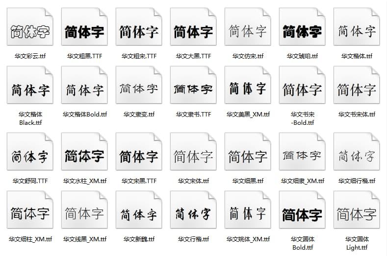 30+华文字体大合集,宋体细黑细隶新魏姚体等系列打包下载