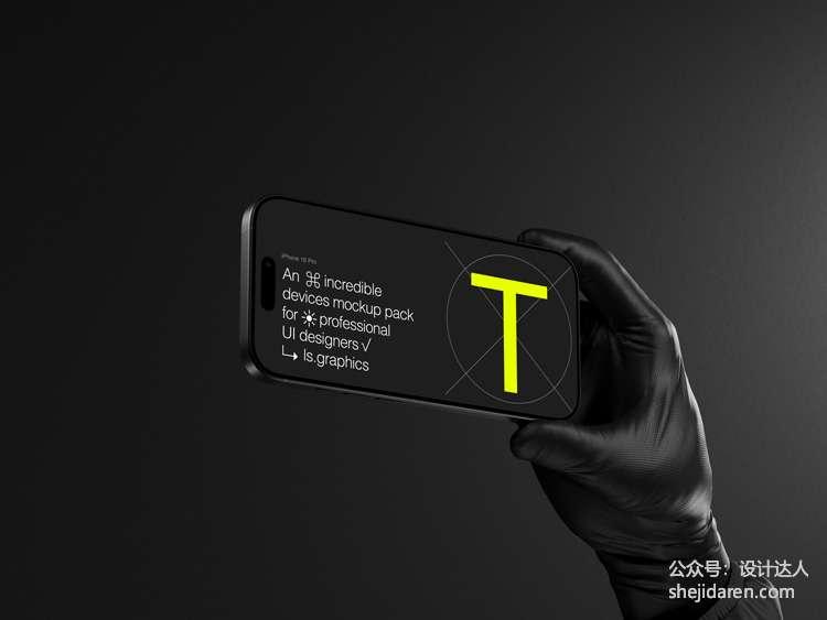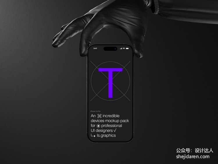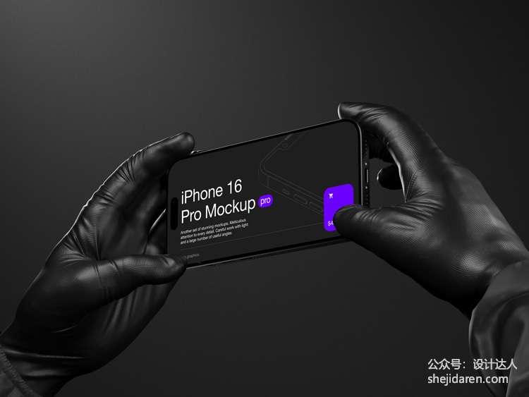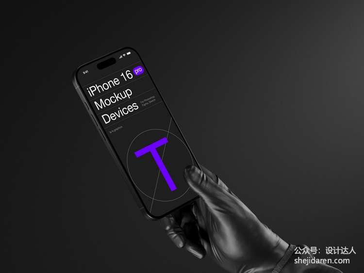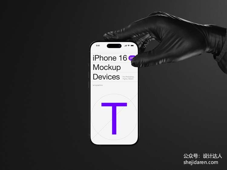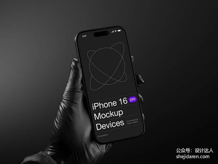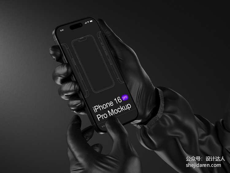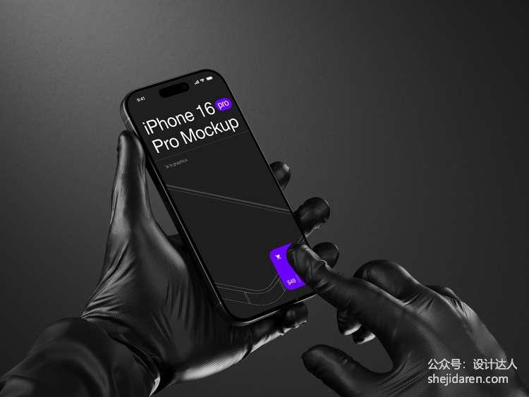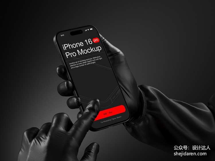 高级极简暗色UI风格,手持 iPhone 16 Pro 样机素材(PSD,Sketch,Figma)