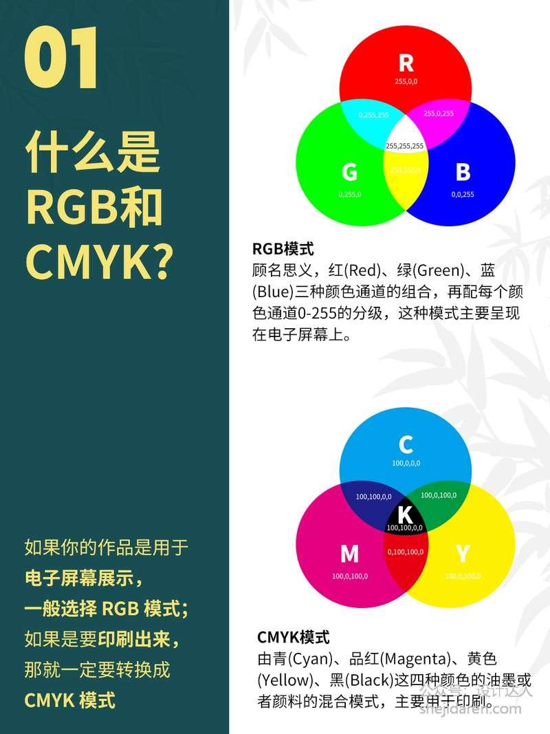 - 如果你的作品是用于电子屏幕展示,选择 RGB 模式;如果要印刷,那就一定要转换成 CMYK 模式。