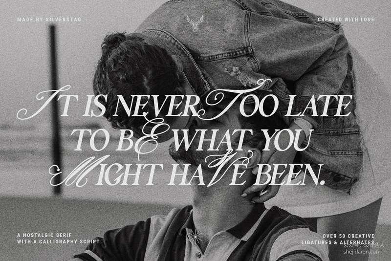 Silver Garden 是一款饱含创作者个人情感的全新字体 ,名字里的 “Silver” 就彰显着它的与众不同。它属于字体系列,包含常规、 italic、 bold 和 bold italic 这 4 种字体选项。主体采用衬线体,常规和 italic 版尽显时尚优雅,像是从时尚杂志中走来;而 bold 和 bold italic 版则在笔画间加入了一些巧妙的曲线,复古韵味十足,让人一秒穿越回过去。