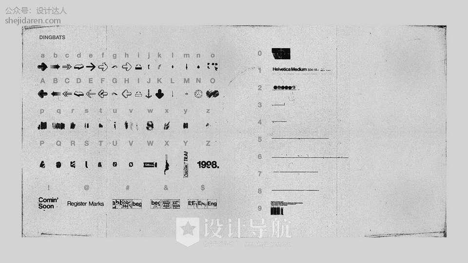 设计师们,准备好让你的设计作品穿越回90年代了吗?今天设计达人介绍一款由 Rafael Nascimento 精心打造的字体——Swiss Grit 字体,这款字体不仅仅是文字的排列,它是对90年代设计英雄们的致敬,是对 Letraset 印刷字体转印技术的热爱的结晶,还带有油墨、机理的质感,用着海报、广告等设计非常合适。